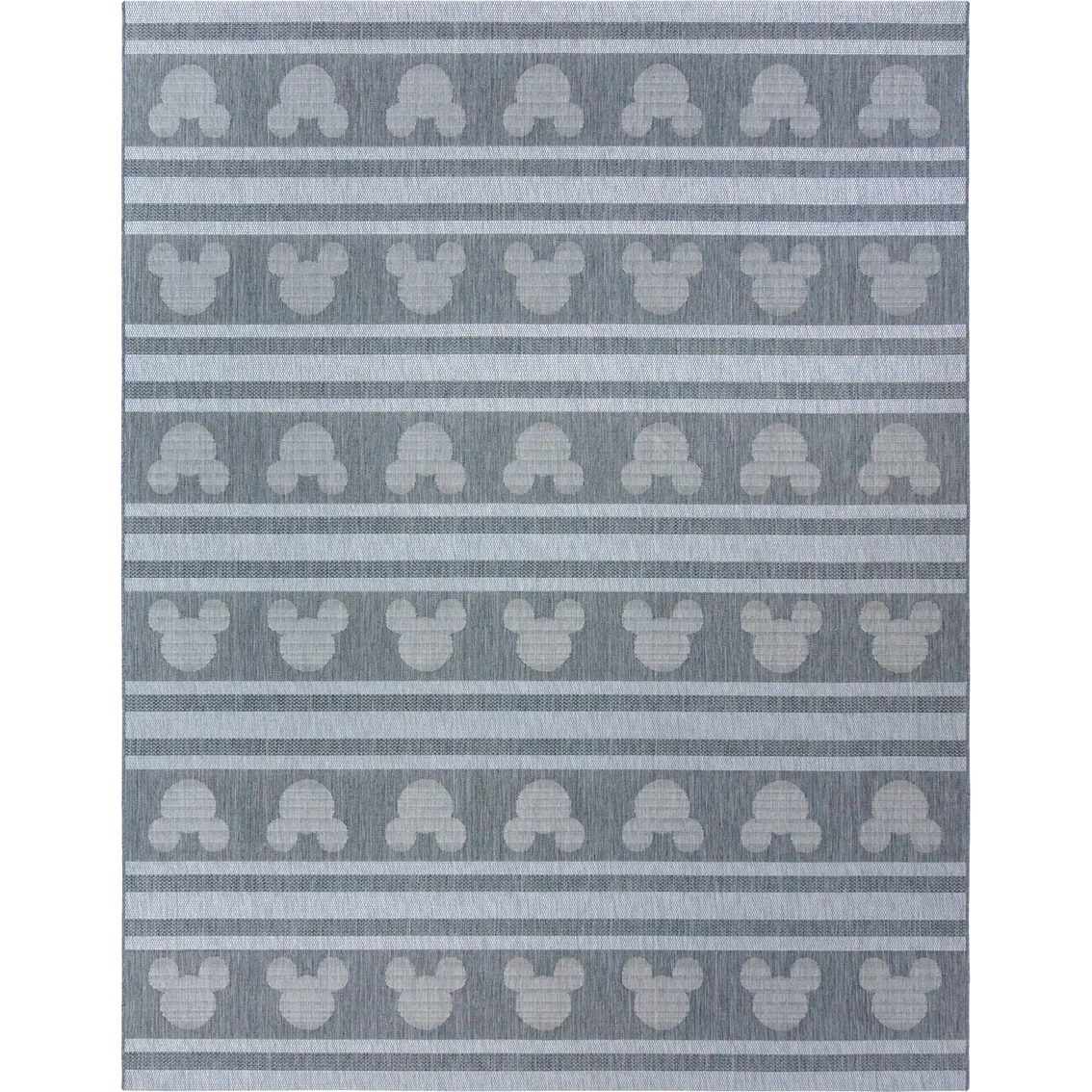 The Disney collection of indoor/outdoor rugs feature stylish Mickey motifs and eclectic patterns in the perfect outdoor colors. This flat woven rug is power loomed using soft yet durable 100% Olefin yarn that is UV stabilized to resist fading. It’s also stain resistant and very easy to care for. Simply wash off with a garden hose! The precision Belgian looms create interesting surface texture similar to natural sisal rugs, but this Mickey outdoor rug is super soft underfoot, will not shed fiber and will provide years of enjoyment indoors or out. Model: 462.