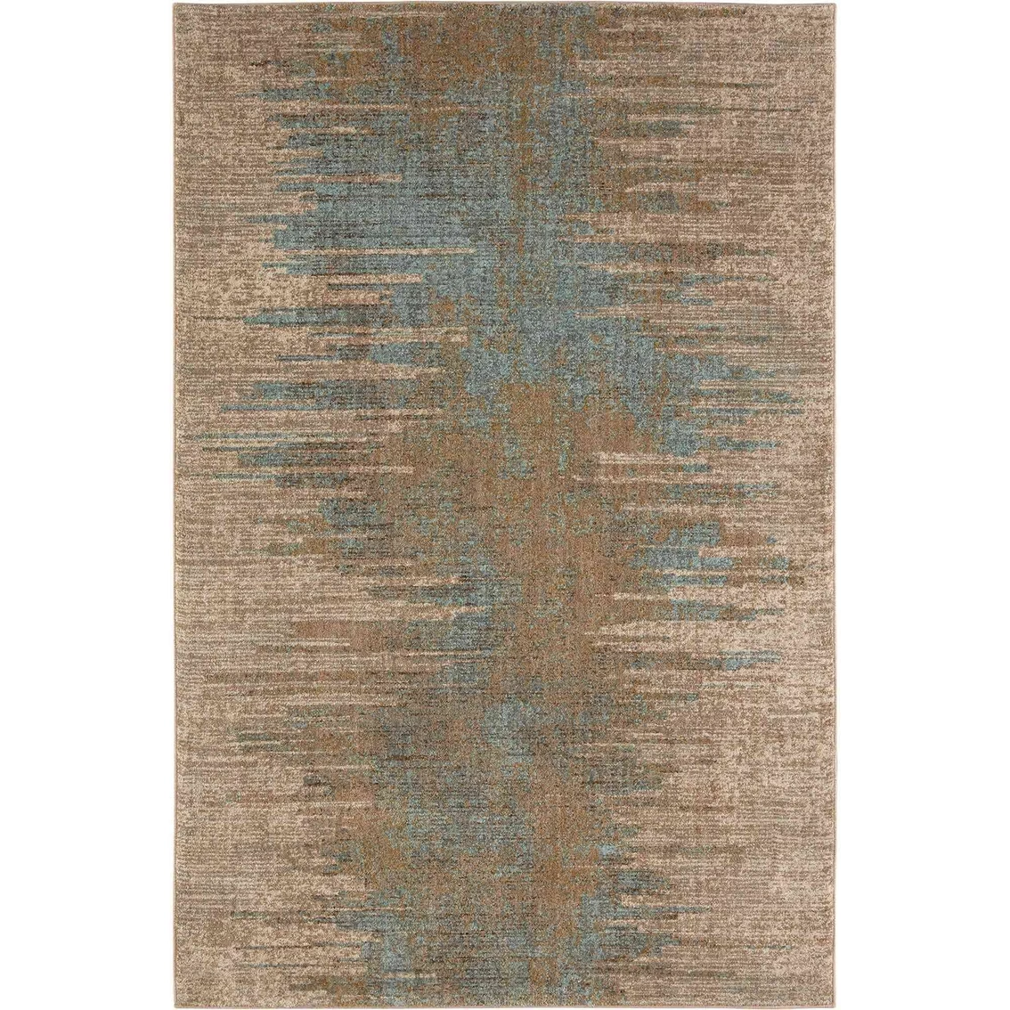 The abstract artistry of the Arielle Bronze Rug from Karastan is highlighted by rich detail erosion techniques and subtle distressing. Hues of bronze, jadeite, hazelnut, willow grey and bone white are woven throughout the design. Crafted from Karastan’s exclusive SmartStrand Silk yarn, the Arielle rug features the sumptuous softness of silk and a built-in premium lifetime stain and soil resistance that will never wear of wash off. Model: 0 86093530396.
