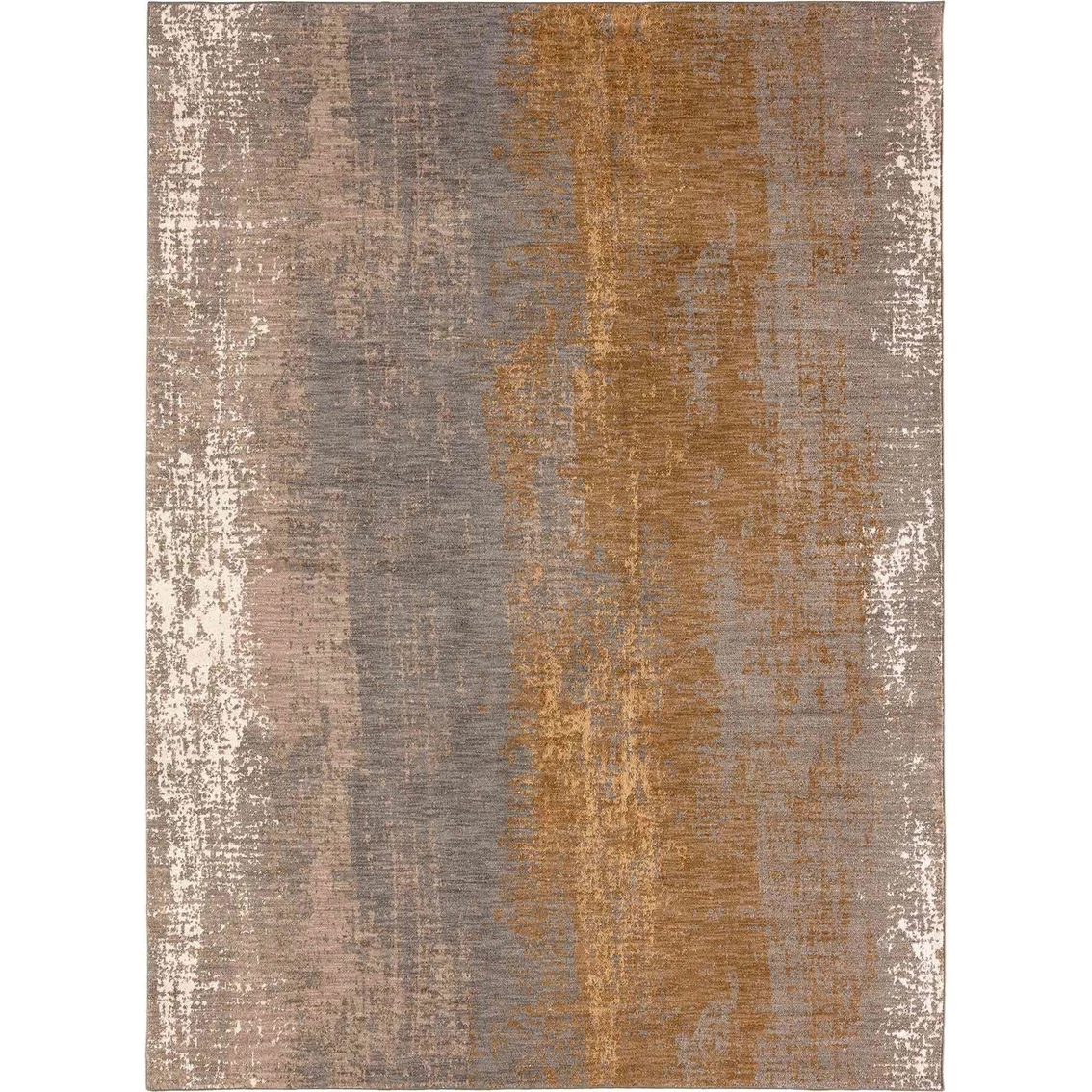 Aura Desert a work of abstract art. Washes of smoky grey, mushroom, desert and brushed gold tones. Karastan exclusive trixeta Smartstrand Silk yarn. Sumptuously soft to the touch with a premium built-in lifetime stain and soil resistance that will never wear or wash off.