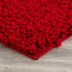 Glam up your living space with the Livia Red Shag Rug. Indulge your toes in this cozy plush rug from the Barrow Collection by L’Baiet. Its solid color brings dimension to hardwood or tile flooring while its lush texture adds comfort to your living space. This charming rug is machine-made from polypropylene with a durable jute backing. When vacuuming, flip the rug upside down, turn on beater bar setting, and vacuum the backside of the rug to loosen dirt. Repeat as many times as needed. If size permits, shake rug outside when necessary to rid rug of dust and debris. Blot any spills with a clean cloth immediately, do not rub. For long-term care, professional cleaning is recommended. No matter where this rug ends up, they recommend pairing it with a rug pad to keep it in place. So, go ahead elevate your room with this luxurious rug; it is sure to draw attention. Model: BW287R57.