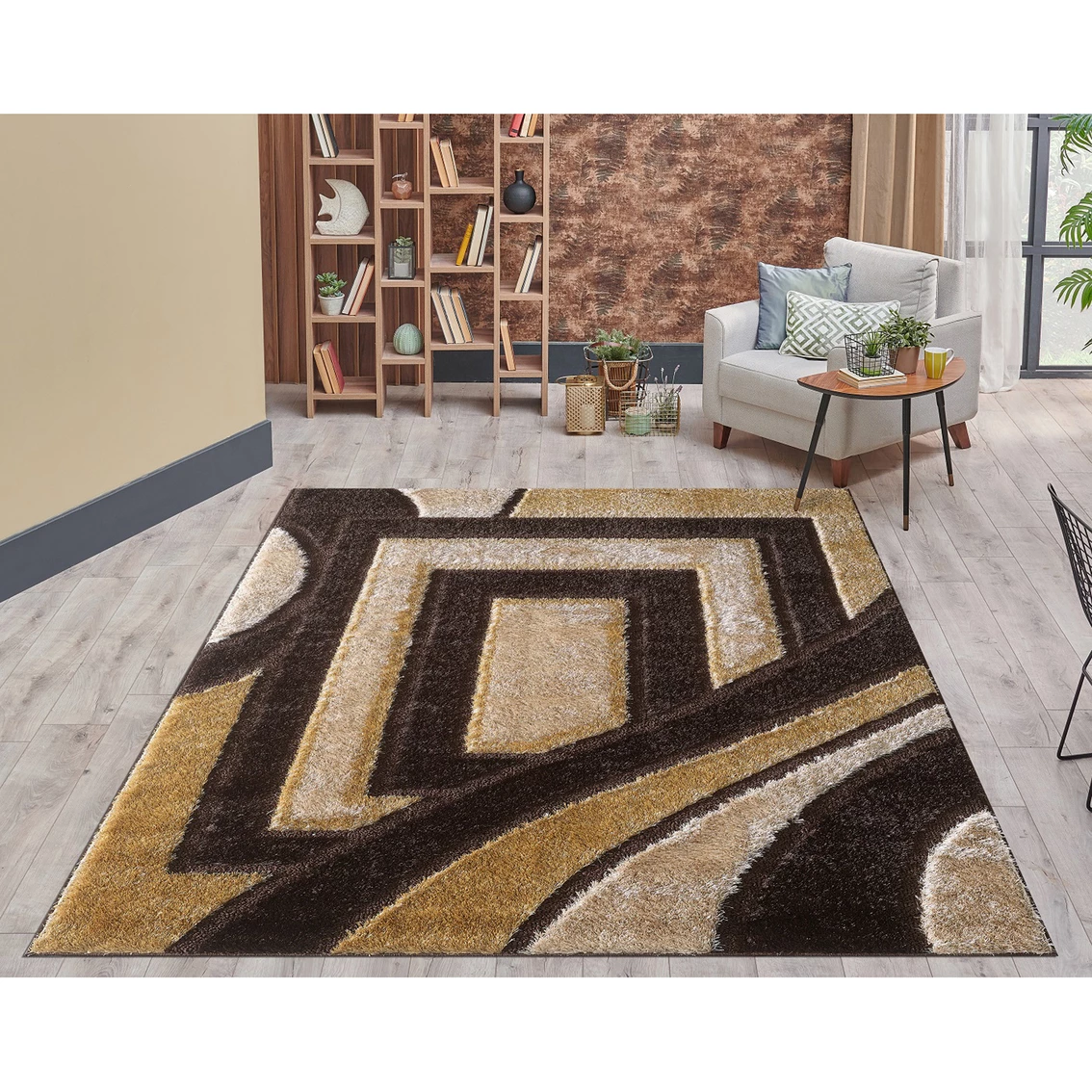 Make a drastic change to your room decor with minimal effort by placing the Shelby Shag Rug from L’Baiet center stage in your room. This eye-catching area rug features bold color blocking shapes and brings interest to the eyes. Most shag rugs are so often available in solid colors but the Sedona Collection from L’Baiet spices up plain colors and adds vibrancy and movement to your living space. Crafted from polyester, this fade and stain resistant design also stands up to the heavy traffic of busy areas in your home. When vacuuming, flip the rug upside down, turn on beater bar setting, and vacuum the backside of the rug to loosen dirt. Repeat as many times as needed. If size permits, shake rug outside when necessary to rid rug of dust and debris. Blot any spills with a clean cloth immediately, do not rub. For long-term care, professional cleaning is recommended. Model: SD391U57.