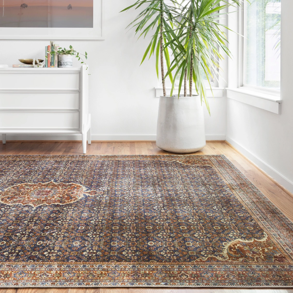 The Layla Collection from Loloi is traditional and timeless, with a beautiful lived-in design that captures the spirit of an old-world rug. This traditional power-loomed rug is crafted in China of 100% polyester with a classic and sophisticated Blue and Spice color palette and subtle patina.