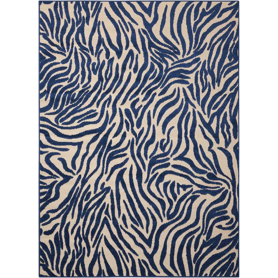 Bold and exotic, this Aloha zebra-inspired design from Nourison radiates a straightforward sophistication thanks to a contemporary two-tone color palette of ivory with your choice of navy-blue, orange or blue. This graphic indoor/outdoor rug brings jungle appeal to your patio, deck, or porch. Machine made from premium stain-resistant fibers for long wear, low maintenance, and a splendid texture. Style: 42620910.