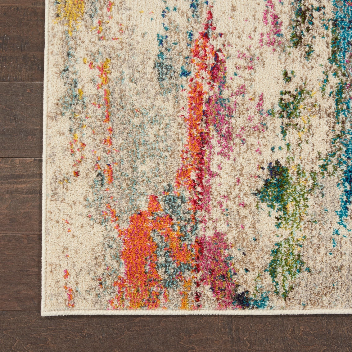 The abstract beauty of a painted canvas is mirrored perfectly in this Celestial Collection rug by Nourison, with a spectrum of colors splashed across an ivory field. The beautifully bohemian tones and silky texture add a note of casual comfort to any room in the home. It will surely enhance your interior. Model: 42620910.