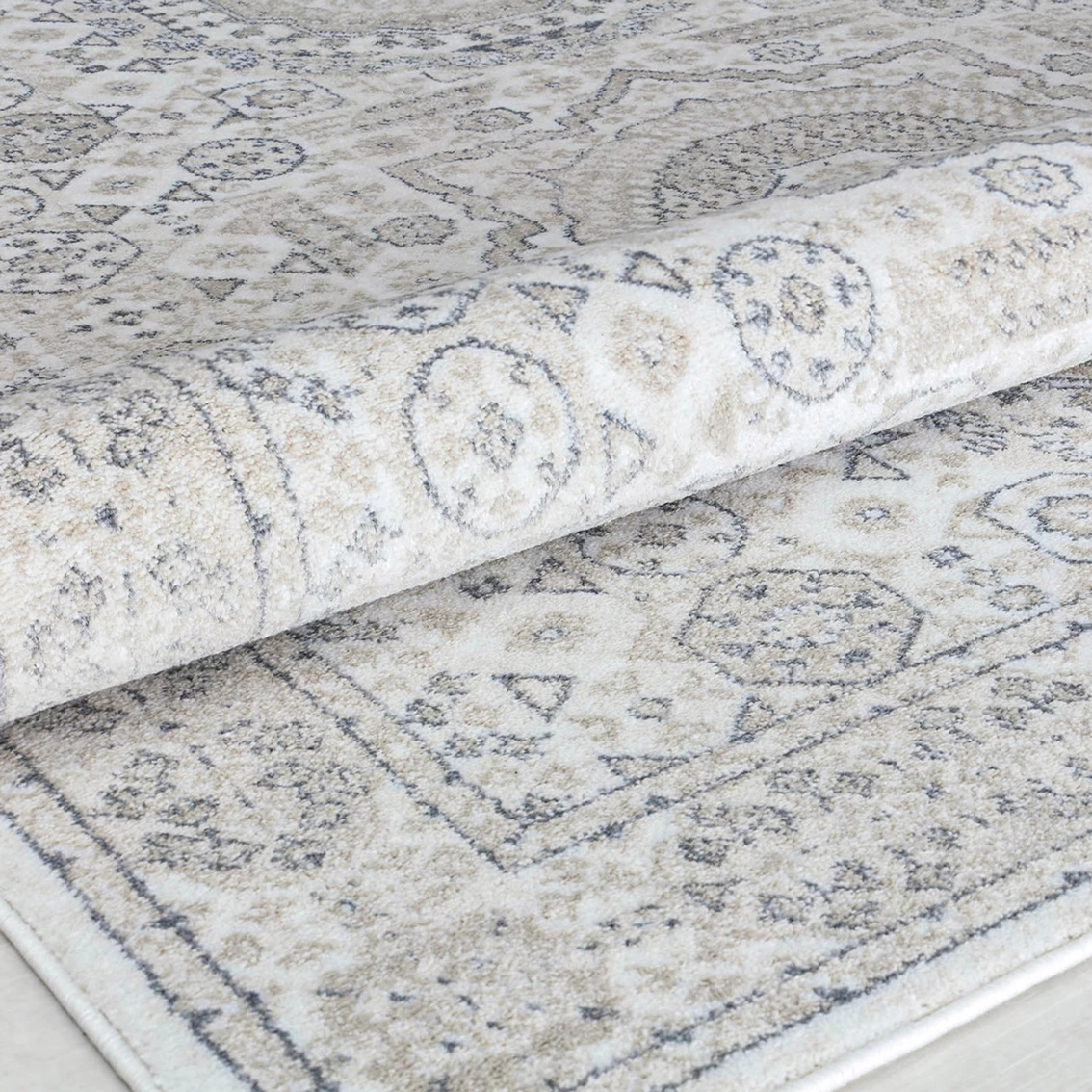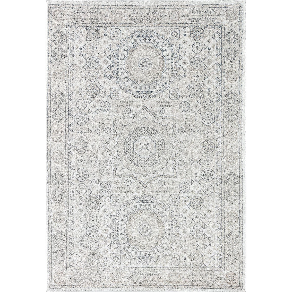 A little elegance, a hint of modesty, a touch of flair — these are all the ingredients needed to craft this Rugs America Harper Balboa Mist Abstract Vintage Area Rug. Featuring a whisper of subdued colors and ornately woven vine-and-dot motifs, the design shrouds your space in tranquility and relaxation. The subtle contrast between the cream and taupe backdrop against dark gray linework is bold yet sophisticated, old-world yet contemporary. Not only does this area rug make for a welcoming invitation, but the cushiony texture also helps add a bounce to your step. Each stride is cradled by what feels like a cloud, and every day you’ll be warmly greeted into your own home, so how delighted will your guests feel? Created with the utmost care and finesse, all Rugs America rugs are made with your busy and hectic life in mind. Stain resistant and durable, this rug will gracefully age with you and your home. Cushion your floors with this rug and your steps will feel lighter than ever. Not only will you be incorporating charm and style to your space, but you will also be adding a thick layer of comfort between your feet and floor. Measures 2 ft. 6 in. x 8 ft. Model: 793530309940.