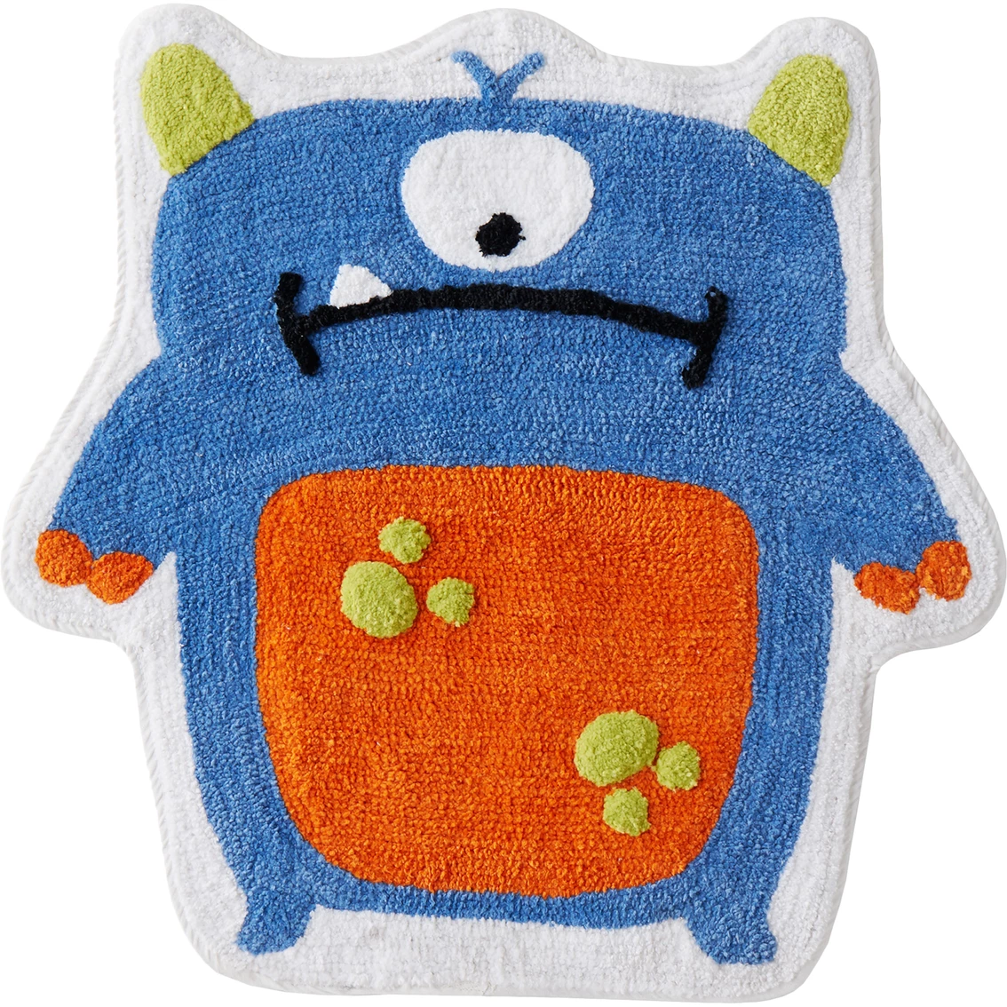 Add a fun to your bath decor with the Monsters 27 x 27 in. bathroom rug from Saturday Knight. This creature-shaped cotton tufted rug features a one-eyed monster design in bright colors. Coordinate the rug with the Monsters shower curtain and hand towel for a complete look. Model: U2599500850007.