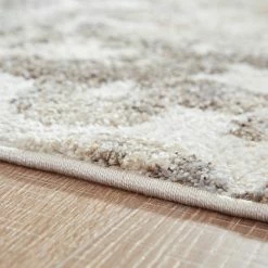 Add classic beauty to any space with the Jiro Accent Rug from Signature Design by Ashley. Machine woven polypropylene rug is 9.8 x 7.8 ft. with shades of brown, cream and gray. Rug has a high/low pile and is spot clean only. Rug pad recommended. Model: R404011.