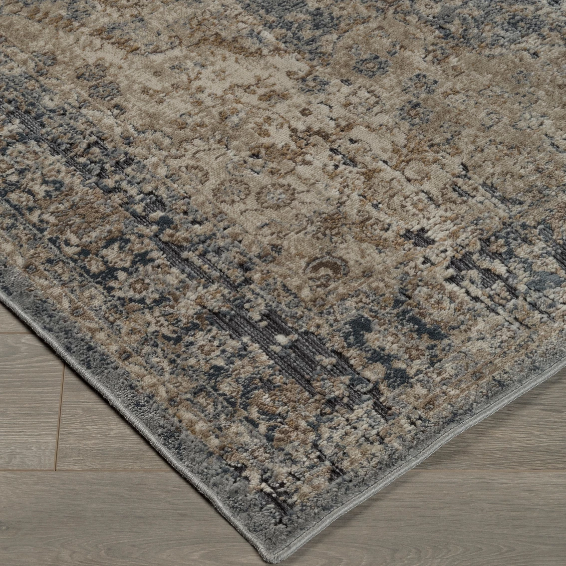 Add beauty to any space with the South Accent Rug from Signature Design by Ashley. Machine woven rug measures 10 x 8 ft. in a vintage pattern in blue and tan. Polypropylene and chenille rug has a 5mm pile and is backed with cotton. Dry clean only. Rug pad recommended. Model: R402721.