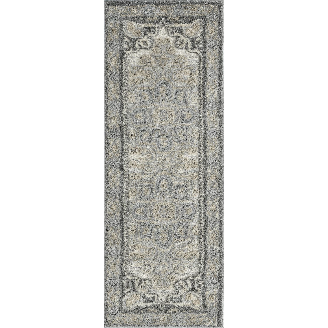 Trendy and appealing with a carved, high-low design and stunning designs, this gorgeous Garfield Authentic Runner Rug from United Weavers will enrich your room decor. It was competently machine-made in Turkey using polypropylene tri-color frieze for an elegant look. Measures 2 ft. 7 in. x 7 ft. 2 in. Model: 2800-90072-28E.