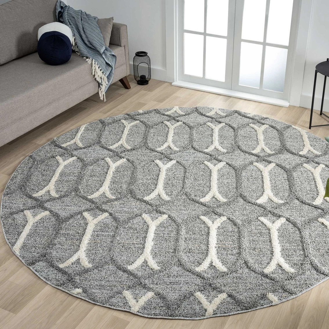 Trendy and appealing with a carved, high-low design and stunning designs, this gorgeous Garfield Inspiration Round Rug from United Weavers will enrich your room decor. It was competently machine-made in Turkey using polypropylene tri-color frieze for an elegant look. Measures 7 ft. 11 in. x 7 ft. 11 in. Model: 2800-90172-88R.
